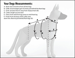 We use the five core body measurements you provide to give us an idea of your dogs body shape and build. These measurements includes two girth, back, collar, chest and front. From these numbers we will build your vest so it's highly recommend that you use a cloth measuring tape (NOT the metal tape you have in your garage) to measure your dog correctly.
